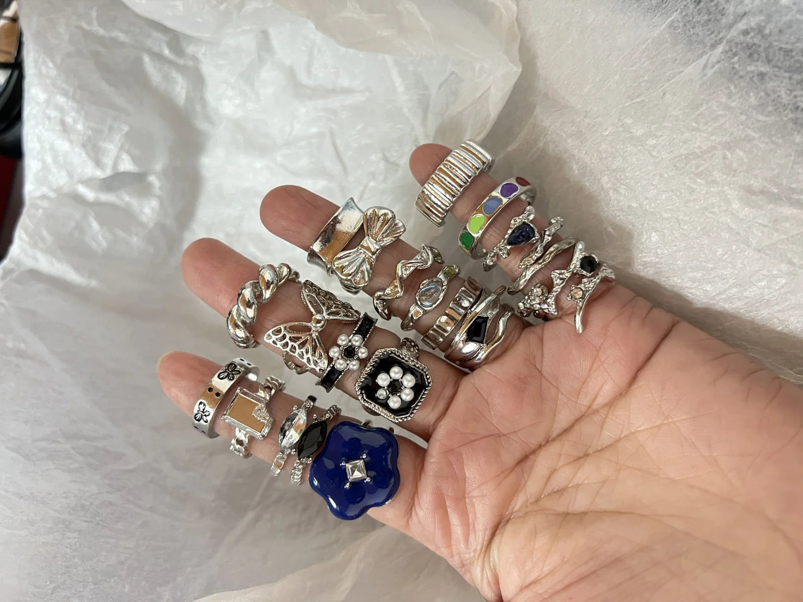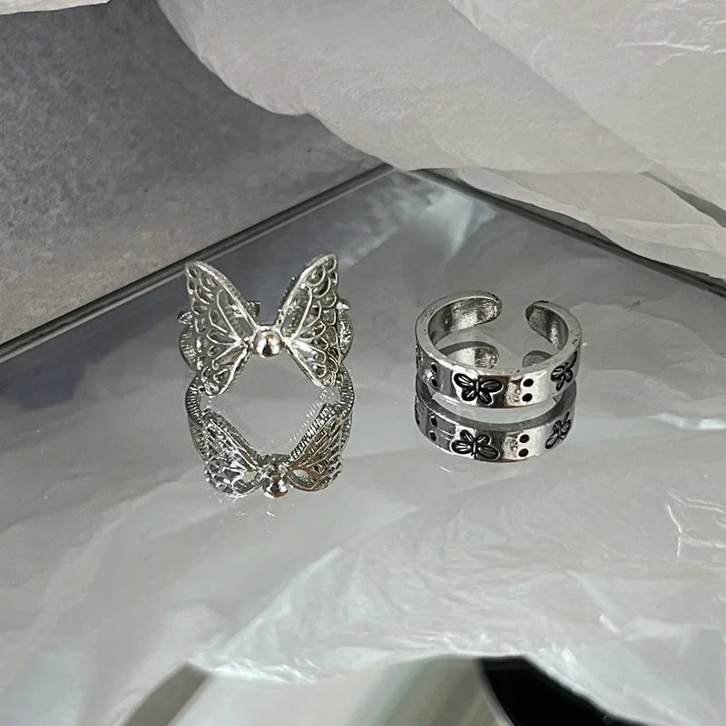 ヴィンテージ シルバーメッキ クロスリングセット レディース ゴシック パンク スチームパンク バタフライリングセット パーティー ファッション ジュエラー