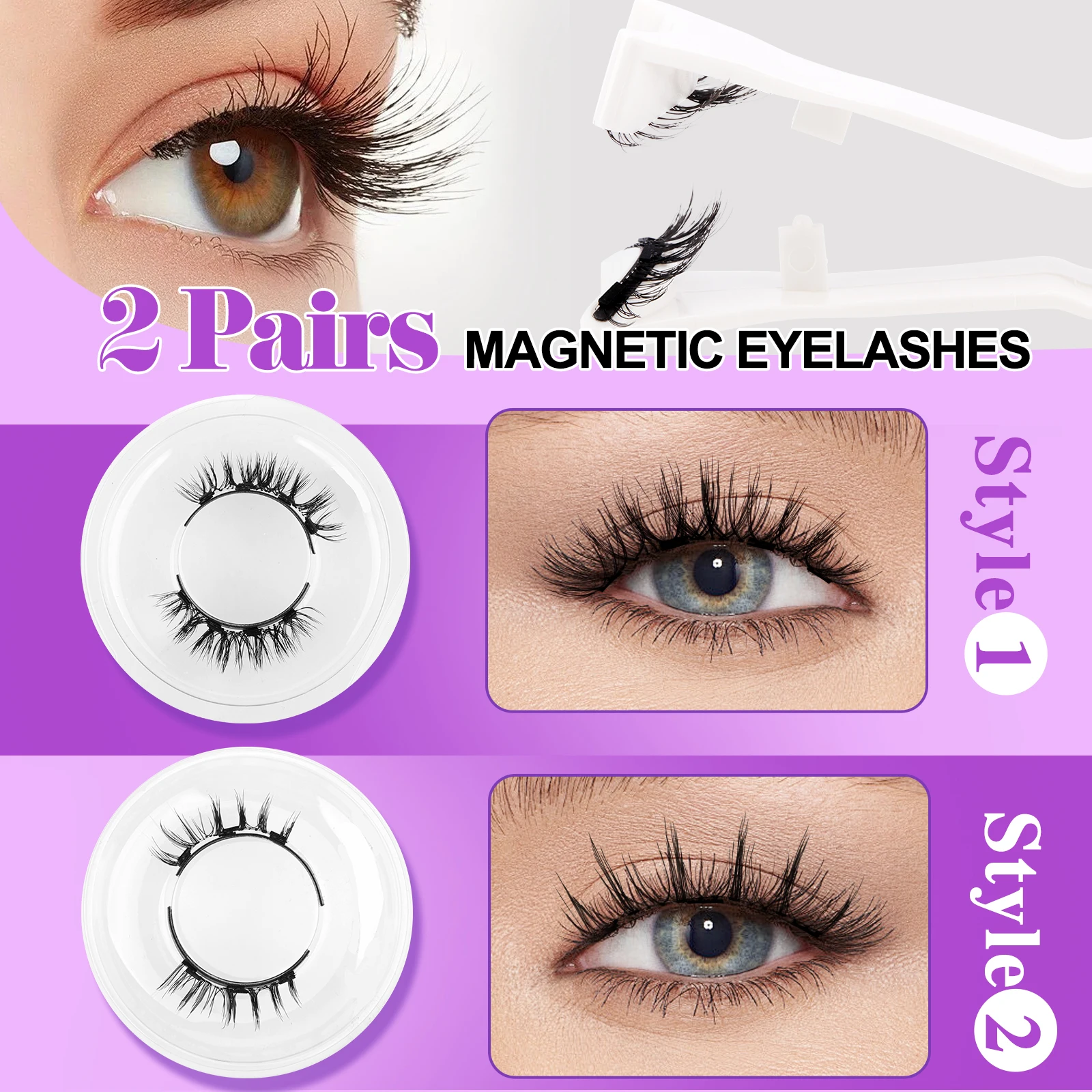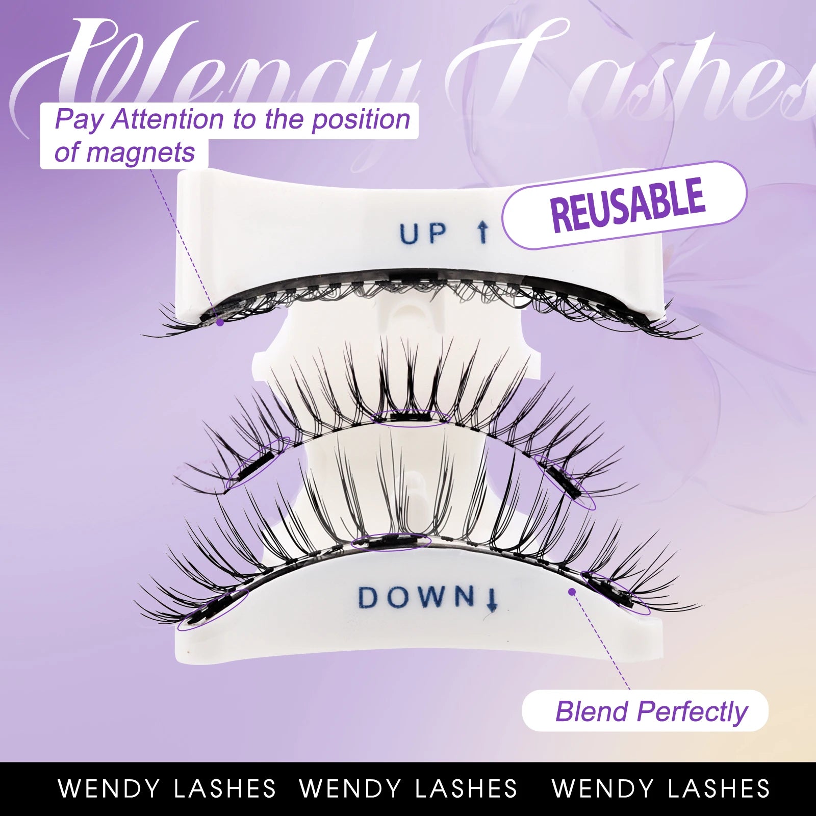 ウェンディラッシュ マグネットまつげ 2ペア ハンドメイド 3D ミンクまつげ 再利用可能 つけまつげセット マグネットピンセットセット メイクアップ