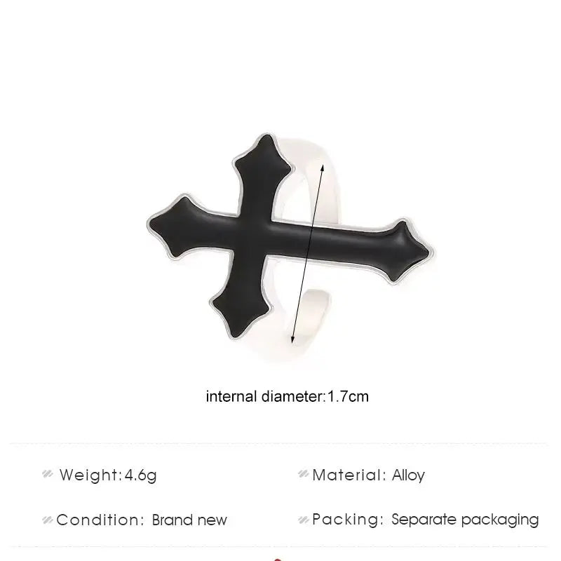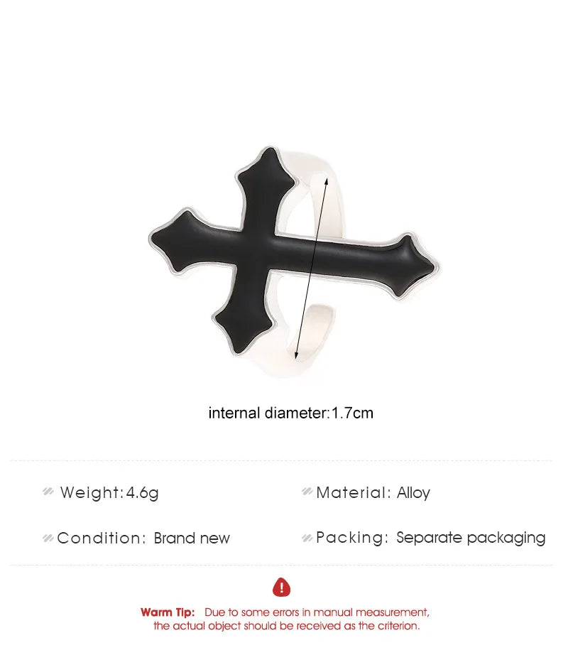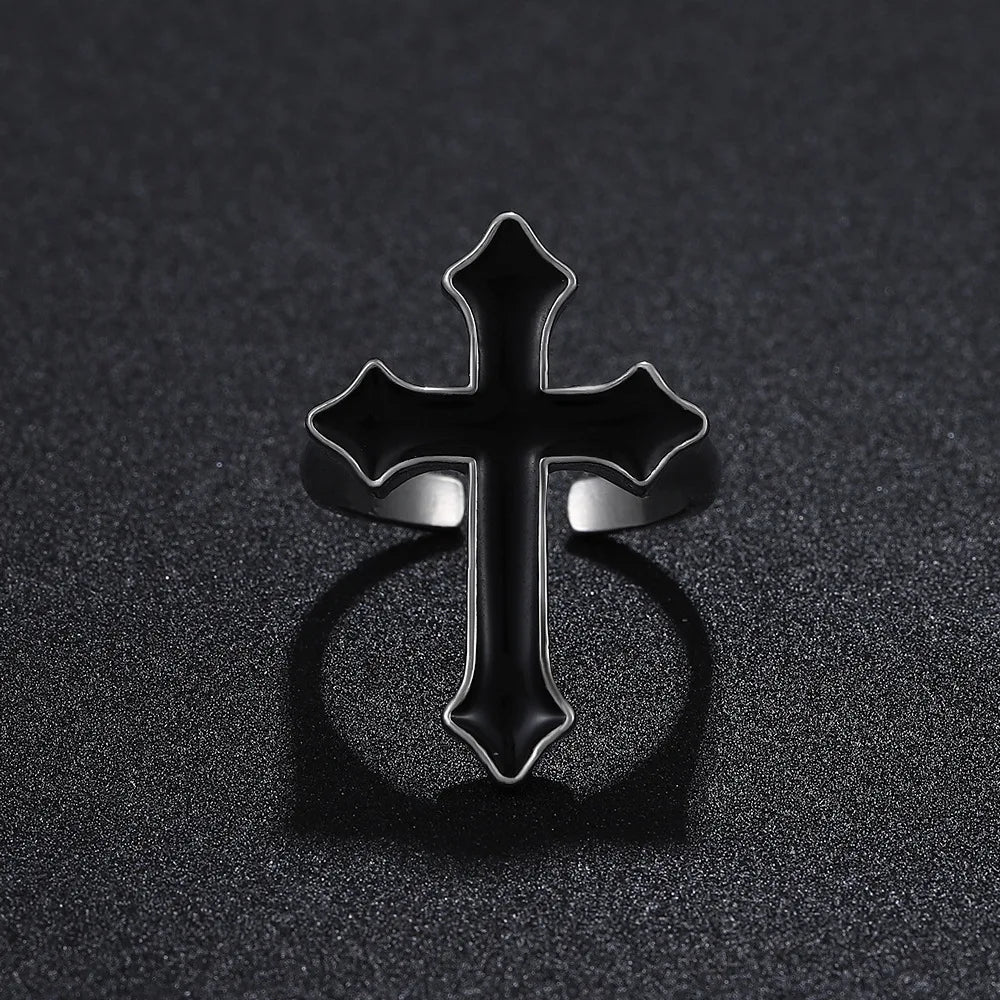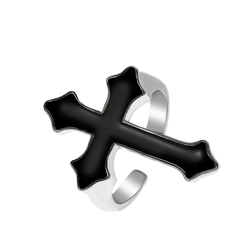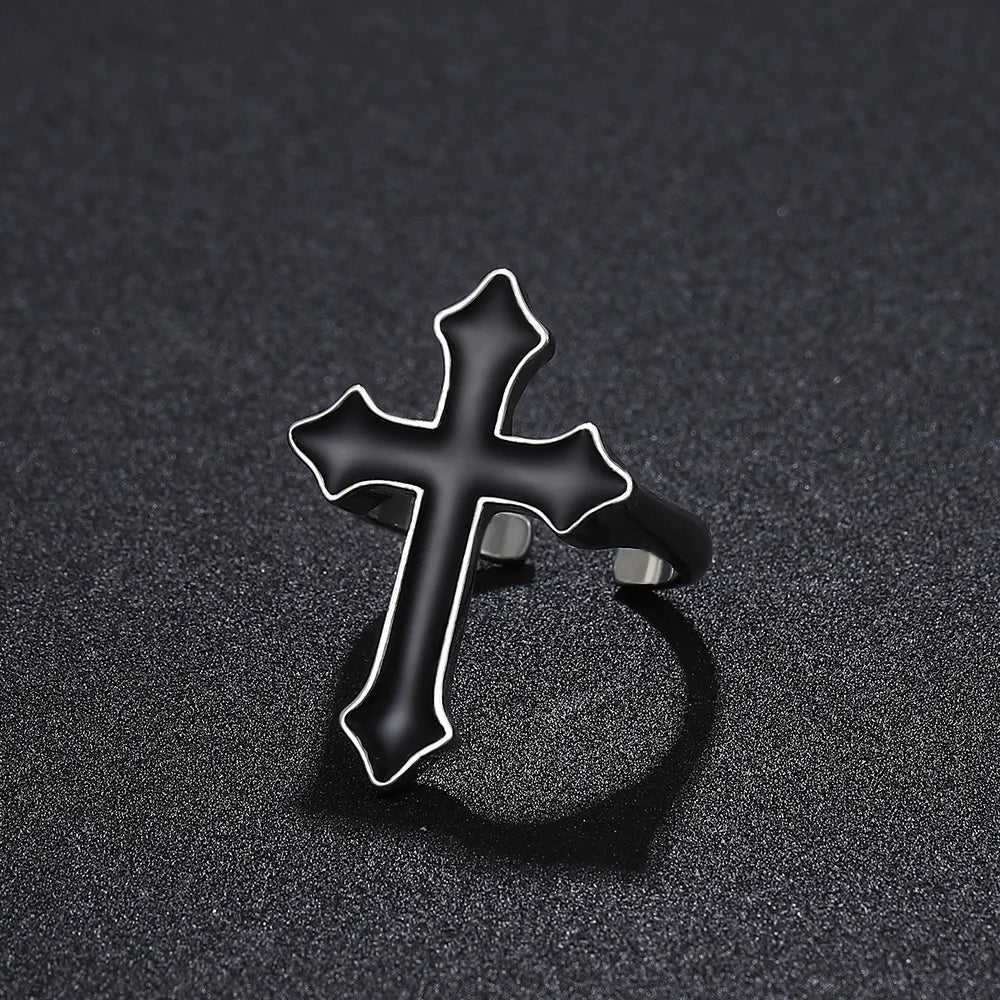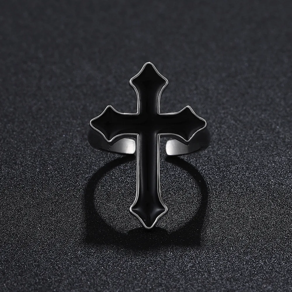 ウエスタンゴシッククロスシェイプリング メンズ パンク ダークアニメ 開口部調節可能 ブラッククロスリング レディース ジュエリーアクセサリー